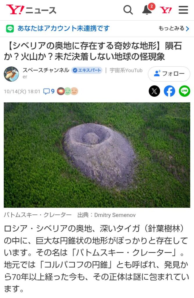 ネットニュースに載っていたシベリアのタイガの森に突如として現れる謎のクレーターの記事が氣になっていた。なんでこのようなものがあるのかはいまだかつて謎なのだそうだ。そのパトムスキー・クレーターがチャネリングメッセージをくれた。