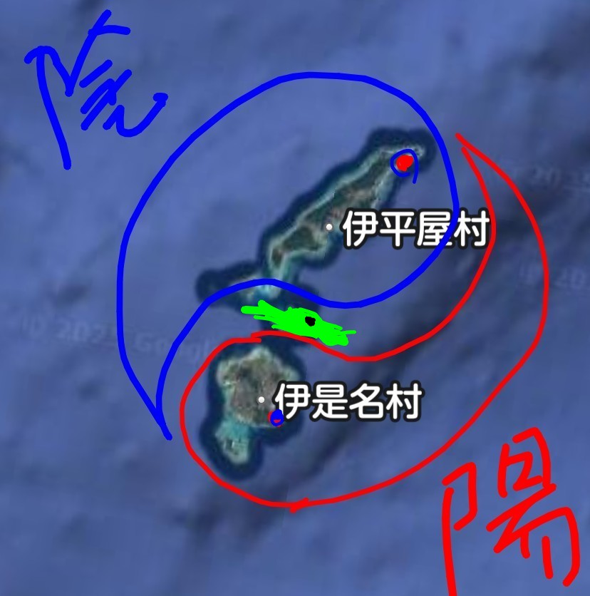 『一頭は知念岬、もう一頭は具志川島(伊平屋島、伊是名島の間の島)です。』